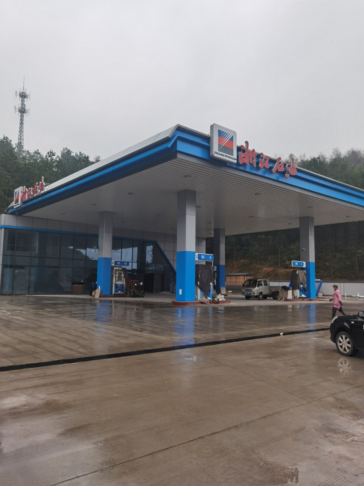 義烏市浙石油綜合能源銷售有限公司后宅前后傅加油站是由義烏市浙石油綜合能源銷售有限公司投資新建的綜合供能服務(wù)站,位于義烏市后宅街道S103省道東側(cè)、稠下線南側(cè)地塊。本項目用地面積為3526.17m2,總建筑面積758.51m2,建筑占地面積557.52m2,為新建項目。 本項目主要建設(shè)內(nèi)容:新建二層站房建筑面積375㎡,新建加油罩棚建筑面積288㎡;埋地罐區(qū)設(shè)置4臺30m3SF型雙層復合埋地油罐(92#、95#、95#、92#),1臺50m3SF型雙層復合埋地油罐(0#柴油),油品儲罐總?cè)萘繛?/span>145m3(柴油罐折半計入),設(shè)置4臺雙油品四槍加油機,加油區(qū)塊根據(jù)《汽車加油加氣站設(shè)計與施工規(guī)范》(GB50156-2012,2014年版)劃分,本站為二級加油站。站內(nèi)新建1個轎車快充充電樁(2個充電車位),預留1個充電樁(預留2個充電車位),充電功率為120kW,根據(jù)《綜合供能服務(wù)站建設(shè)規(guī)范》(DB33/T2136-2018)劃分,充電區(qū)塊為IV級充電區(qū)塊,按照地理位置劃分為“縣級市、縣級城區(qū)綜合供能服務(wù)站”;綜上,本站為二級綜合供能服務(wù)站。