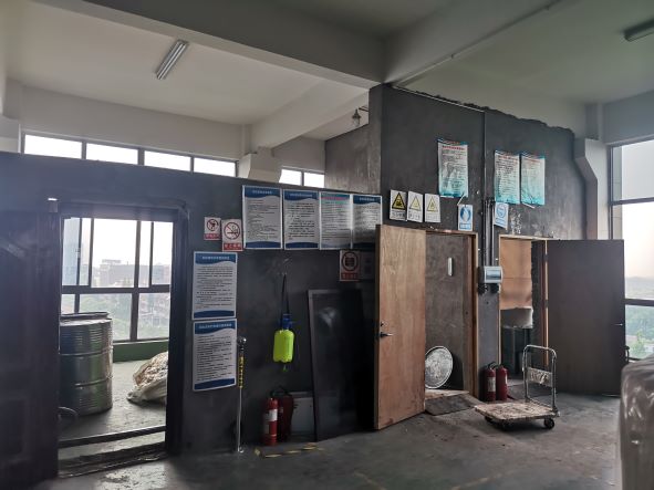 海寧市金特紡織有限公司,成立于2013年7月,位于浙江省嘉興市海寧市許村鎮(zhèn)永福村園區(qū)東路5號,法定代表人為金伊平,類型為有限責(zé)任公司(自然人投資或控股),主要經(jīng)營范圍為裝飾布、沙發(fā)布、窗簾布、其他紡織制成品制造、加工;紡織品繡花、轉(zhuǎn)移印花加工;經(jīng)營本企業(yè)自產(chǎn)產(chǎn)品的出口業(yè)務(wù)和本企業(yè)所需機(jī)械設(shè)備、零部件、原輔材料的進(jìn)口業(yè)務(wù)。該企業(yè)最北側(cè)新建生產(chǎn)廠房內(nèi)涉及復(fù)合生產(chǎn)工藝,布置了一臺復(fù)合機(jī),該車間涉及作業(yè)人員10人。 企業(yè)在復(fù)合生產(chǎn)過程中使用膠水、丁酮(甲基乙基酮)、架橋劑、DMF(N,N-二甲基甲酰胺)共4種危險(xiǎn)化學(xué)品,根據(jù)《危險(xiǎn)化學(xué)品安全使用許可適用行業(yè)目錄》(國家安全生產(chǎn)監(jiān)督管理總局公告2013年第3號)辨識可知,該企業(yè)不需要辦理危險(xiǎn)化學(xué)品安全使用許可證。