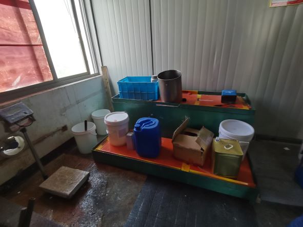 根據(jù)企業(yè)提供的原輔物料及安全技術(shù)說明書,結(jié)合《危險(xiǎn)化學(xué)品目錄》(2015版)辨識(shí),企業(yè)生產(chǎn)過程中涉及使用的危險(xiǎn)化學(xué)品有GOLF CLEAR TOPCOAT A光油(以下簡稱“油性面漆”)、HANSUN DCP-40P(過氧化二異丙苯[含量≤52%,含惰性固體≥48%])、822X-JJS-718硬化劑(以下簡稱“硬化劑”)、800G PU 073絲印油墨(以下簡稱“油墨”)、UKV1 1/L油墨助劑(以下簡稱“油墨助劑”),噴涂過程中使用的水性底漆、KS-453稀釋劑(以下簡稱“稀釋劑”,搭配油性面漆使用)不屬于危險(xiǎn)化學(xué)品,因此該企業(yè)屬于工貿(mào)行業(yè)涉及使用危險(xiǎn)化學(xué)品的企業(yè)。根據(jù)《危險(xiǎn)化學(xué)品安全使用許可適用行業(yè)目錄》(國家安全生產(chǎn)監(jiān)督管理總局公告2013年第3號(hào))辨識(shí),不屬于該目錄內(nèi)行業(yè),該企業(yè)不需要辦理危險(xiǎn)化學(xué)品安全使用許可證。
