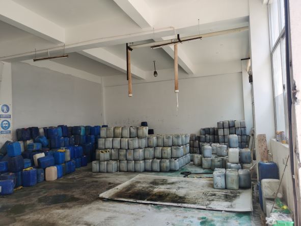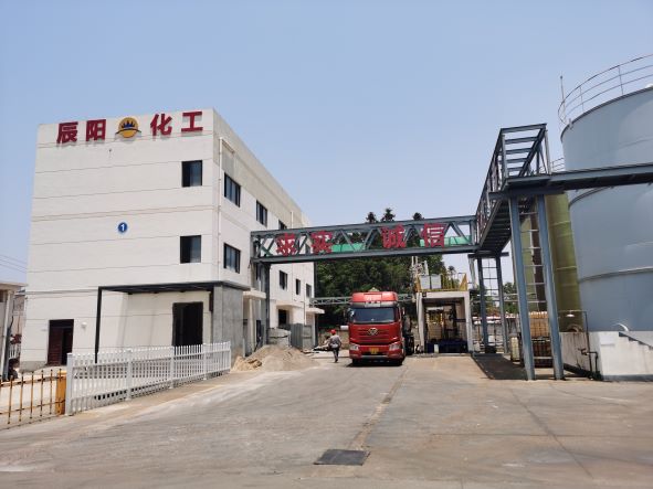 辰陽化工于2019年08月28日取得衢州市應急管理局核發(fā)的危險化學品經營許可證(有效期至2022年08月27日),證書編號:衢應急經(龍)字2019000010號,許可經營范圍:帶儲存經營鹽酸(液體儲量3000噸)、硫酸(液體儲量1550噸)、液堿(液體儲量900噸),共計3種;無倉儲經營氫氧化鈉、氨溶液[含氨>10%]、次氯酸鈉溶液[含有效氯>5%]、1,2-二甲苯、1,3-二甲苯、1,4-二甲苯、二甲苯異構混合液、氟化氫[無水]、氫氟酸、環(huán)己酮、環(huán)己烷、三氯甲烷、四氯乙烯、1,1,2,2-四氯乙烷、1,1-二氯乙烯、1,2-二氯乙烯、三氯乙醛[穩(wěn)定的]、環(huán)氧樹脂、乙酸乙酯、甲醇、乙醇[無水]、涂料用稀釋劑、甲醛溶液、甲酸、乙酸[含量>80%]、乙酸溶液[10%<含量≤80%]、磷酸、碳酸鋰、氫氧化鋰、氯化鈣;易制爆:過氧化氫溶液[含量>8%]、硝酸、六亞甲基四胺,共計33種(其中碳酸鋰、氯化鈣為非危險化學品)。經營儲存場所位于廠區(qū)北側,包括1座戊類罐區(qū)(1個500m3液堿罐、2個500m3硫酸罐和6個500m3鹽酸罐)、1座裝卸車臺及輔助車間1F(包裝間)。
