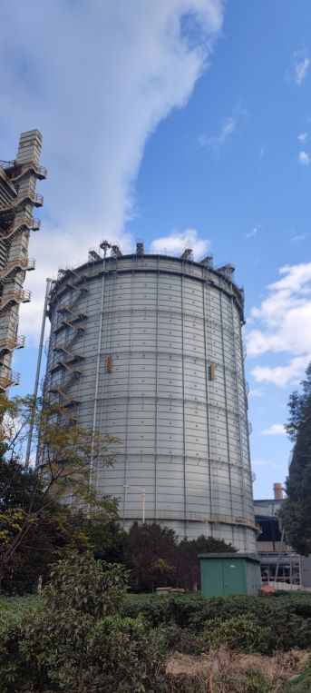 寧波鋼鐵有限公司現(xiàn)有1座16.5萬m3高爐煤氣柜,于2007年5月建成投產(chǎn),至今已運行十余年。目前,16.5萬m3高爐煤氣柜存在立柱側(cè)板漏油問題,運行情況不理想。為了解決生產(chǎn)存在的問題,寧波鋼鐵有限公司在高焦煤氣柜站區(qū)東南角新建1座9萬m3單段式橡膠膜密封型高爐煤氣柜,并將16.5萬m3高爐煤氣柜改造為10萬m3單段式橡膠膜密封型高爐煤氣柜,兩座高爐煤氣柜并列運行。為了使工程建設(shè)盡可能不影響生產(chǎn)運行,以保證項目建設(shè)期間始終有1座高爐煤氣柜在線運行。寧波鋼鐵有限公司先行建設(shè)新建9萬m3高爐煤氣柜。后期待9萬m3高爐煤氣柜建成投產(chǎn)后,再將16.5萬m3高爐煤氣柜改造為10萬m3單段式橡膠膜密封型高爐煤氣柜。