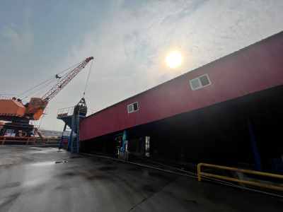 為了配套企業(yè)40萬噸差別化纖維項(xiàng)目的原料運(yùn)輸,企業(yè)在廠區(qū)南側(cè)設(shè)有自備碼頭。該碼頭布置在廠區(qū)南側(cè),李湖南線宣杭鐵路橋附近航道轉(zhuǎn)彎段北側(cè),共設(shè)挖入式港池2個,其中東側(cè)臨近104國道李湖大橋的為港池一(1#泊位、2#泊位、3#泊位),西側(cè)臨近宣杭鐵路橋的為港池二(設(shè)有4#泊位、5#泊位、6#泊位)。