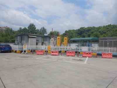 加油區(qū)設(shè)置罩棚,罩棚為膜結(jié)構(gòu)。罩棚下設(shè)置4臺雙油品四槍潛油泵式加油機(jī)(汽油加油槍帶油氣回收)和2臺CNG雙槍加氣機(jī)(停用);埋地油罐區(qū)設(shè)有3只30 m³埋地臥式單層鋼制油罐(油罐均為車道罐,設(shè)置防滲承重罐池),分別為2只95#汽油罐,1只92#汽油罐;加氣部分(設(shè)備均停用)設(shè)置容積共24m³的CNG儲氣井4 口,脫水裝置1 套,調(diào)壓計(jì)量撬1套、壓縮機(jī)2 臺(1 用1 備);加油站油罐總?cè)莘e折算為90m³,根據(jù)《汽車加油加氣加氫站技術(shù)標(biāo)準(zhǔn)》GB50156-2021的相關(guān)規(guī)定,該加油站為三級加油站。